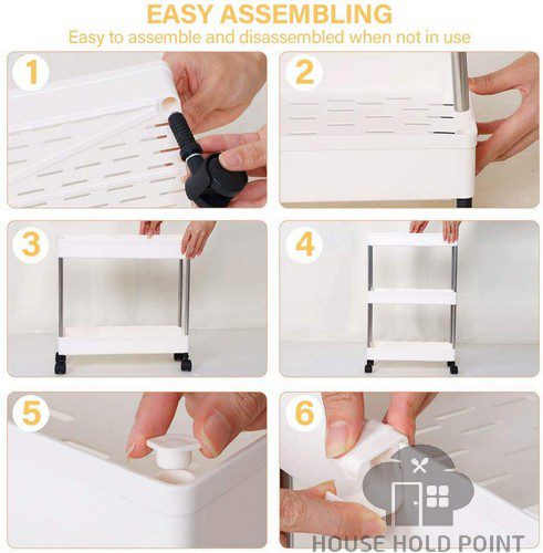 - 【Easy to Assemble】--The bathroom storage cart is very easy to install without any extra tools. Dimension:15.7" L x 5.1" W x24 " H. This partical small utility cart is great extra storage for smaller spaces. Mobile utility cart is made of high-grade plastic and stainless steel, lightweight and flexible, sturdy and durable.