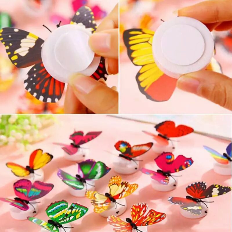 Description:Made of superior material, it has good durability for your long-term use.LED butterfly lights with soft lighting offer you more light and warm. Lovely butterfly light become night sprites to accompany you at night.Easy to stick: Can be used on any dry, clean and smooth surface. The butterfly wall decors will not damage paint when removed.Versatile: Apply to decor a theme party, Wall Decals, Butterfly museum embellishment, Children room, Photography background, Christmas, Wedding, Birthday, etc.Specification:Material: ABS + LEDColor: Send randomlyButterfly size: 5.7cm x 6.7cmSticker pad diameter: 3.5cm