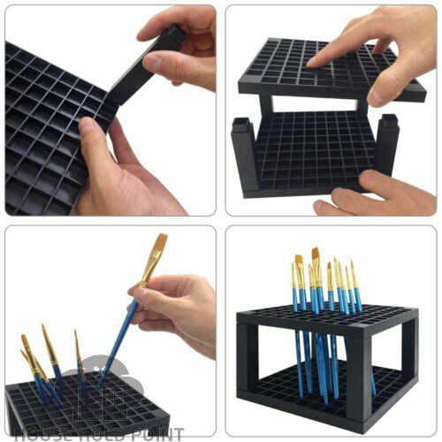 100% brand new and high quality. It is made of a sturdy plastic frame, standing stable and firm. Convenient assembly, detachable upper and lower layers, so that the brushes are arranged neatly and at medium height. The perfect way to keep your paint brushes, markers, pens and pencils organized and neat. All your pens, art brushes, drawing pencils and other art or stationery tools will be stored and sorted in place. No more mess of your tabletop. Just insert four columns into top and bottom square plate. It won't take up a lot of space when you don't need it temporarily. You can use it on different occasions, suitable for home, school, office, etc. Specifications: Material: plastic Color: As shown in the picture Size: 145mmx145mmx90mm Weight: about 174g